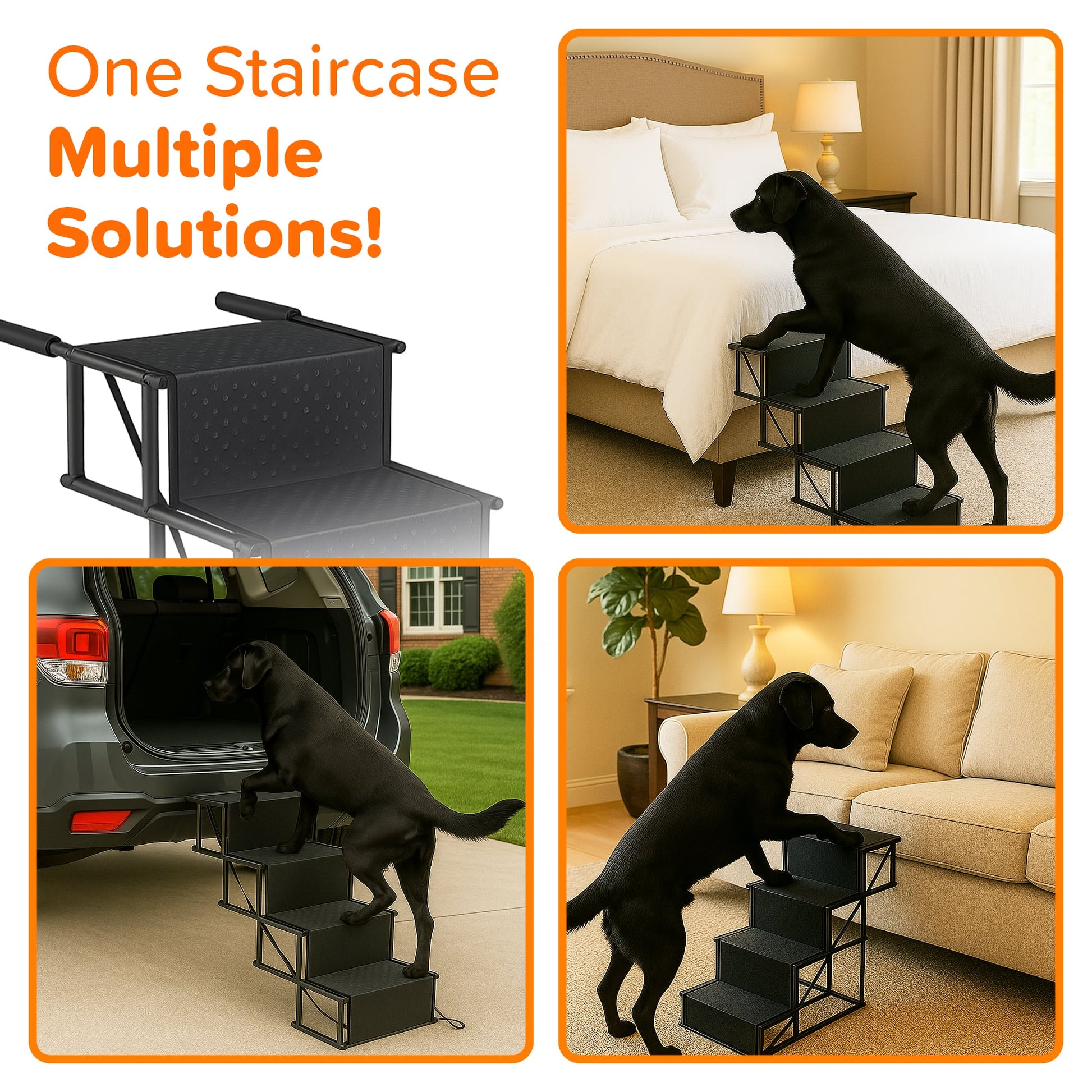 Going down is just as easy. The staircase is angled for a gentle descent, so your dog won’t feel rushed or scared—just steady, safe steps all the way down.