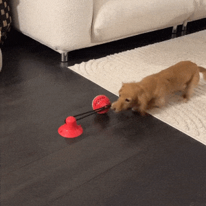 Great Indoor Toy I stick this to the floor, and my dog entertains himself for ages. It’s been a lifesaver when I’m busy working. He loves chewing on the ball and tugging at the rope.