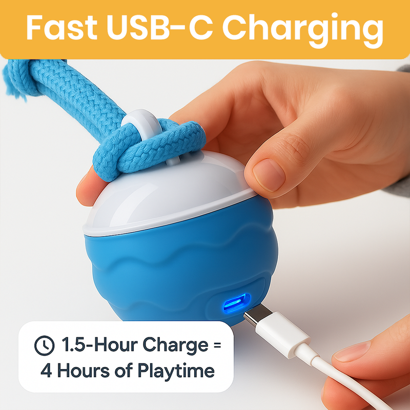 A 1.5-hour charge gives your pup up to 4 hours of nonstop fun. No batteries, no downtime—just plug in and play.